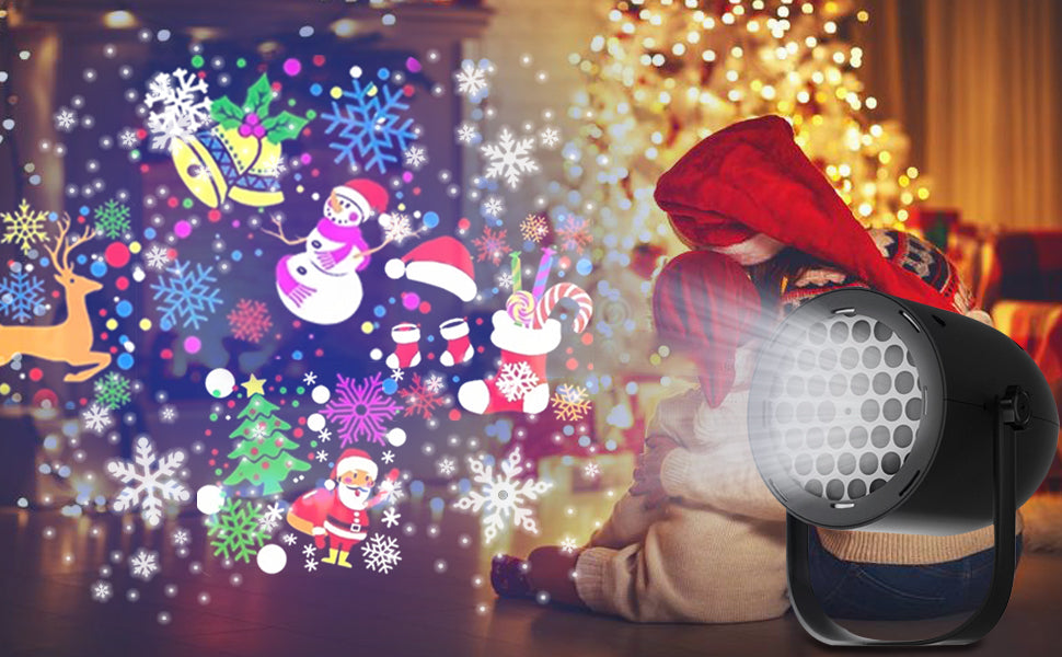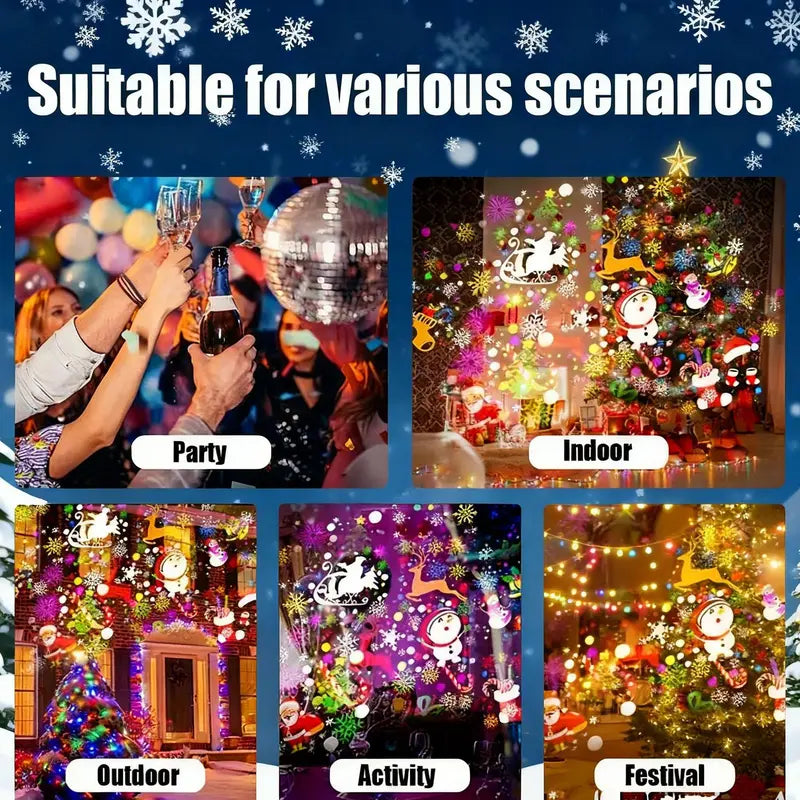 🎄 LED Christmas Projector | 16 Patterns ✨ USB 5V/1A 🚗🏠 Holiday Ambience Lamp